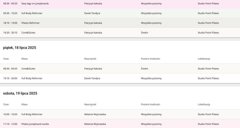 Zarezerwuj swoje pierwsze zajęcia pilates w naszym studio. Sprawdź dostępne terminy i dołącz!